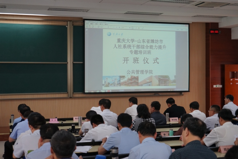 为更好地适应人力资源和社会保障工作发展新形势,全面提升我市人社干部综合能力与服务水平,潍坊市人社局于5月13日至19日在重庆大学举办了市人社系统干部综合能力提升专题培训班,重庆大学公共管理学院副院长、教授、博士生导师李志同志,潍坊市政府党组成员,市人社局局长、党委书记陈汝孝同志出席开班仪式并做重要讲话。市人社局机关正科级及以上干部,局属各单位党政主要负责同志,各县市区人社局局长、市属各开发区劳动人事局局长等60余人参加本次培训。