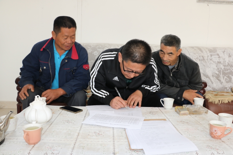 图为工作人员帮助贫困户肖金光填写农村贫困人口就业与社会保障情况精准识别卡。