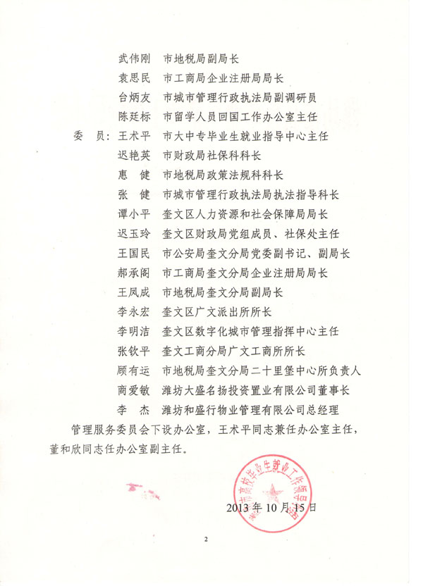 关于成立潍坊市大学生创业孵化中心管理服务委员会的通知