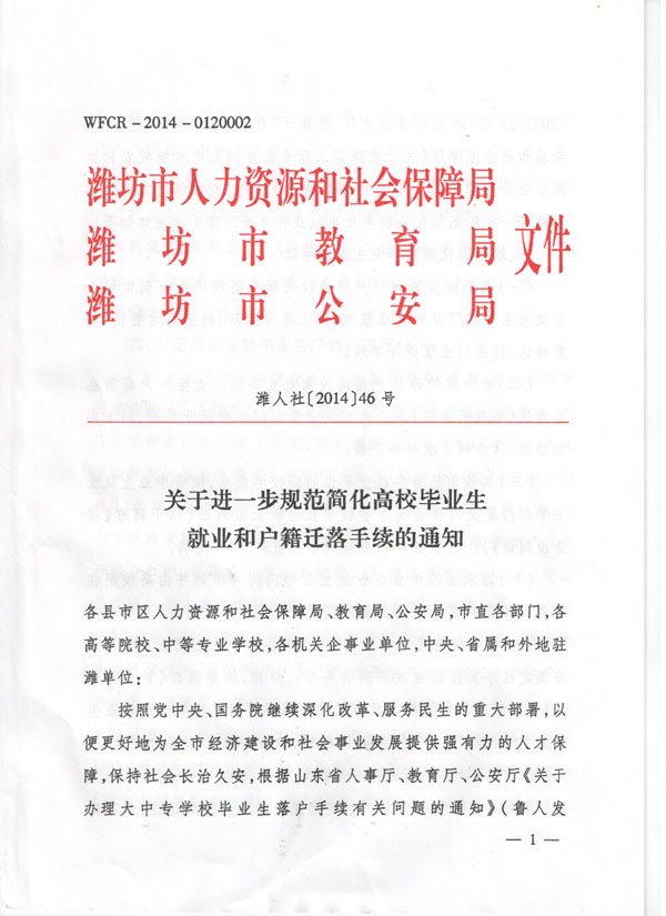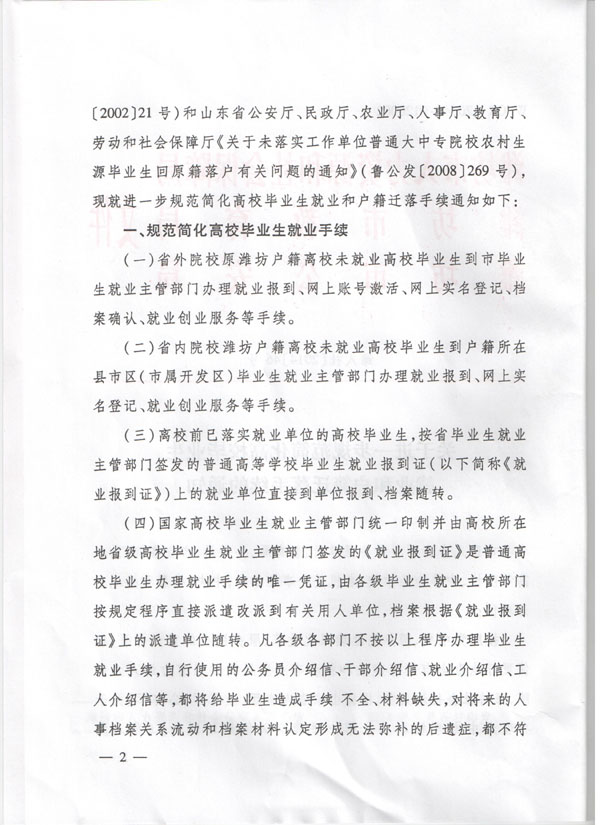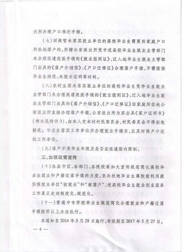 关于进一步规范完善和简化高校毕业生就业和户籍等手续的通知