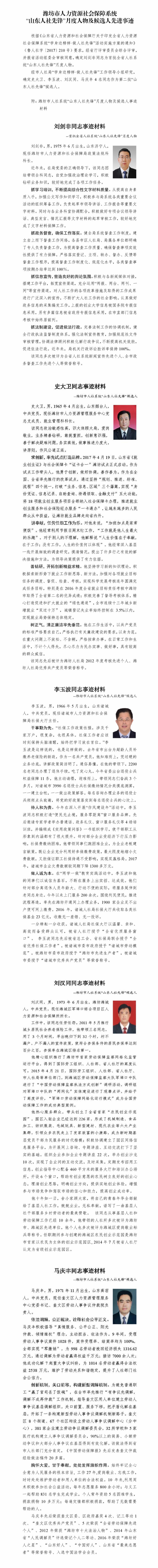 潍坊市人力资源社会保障系统“山东人社先锋”月度人物及候选人先进事迹