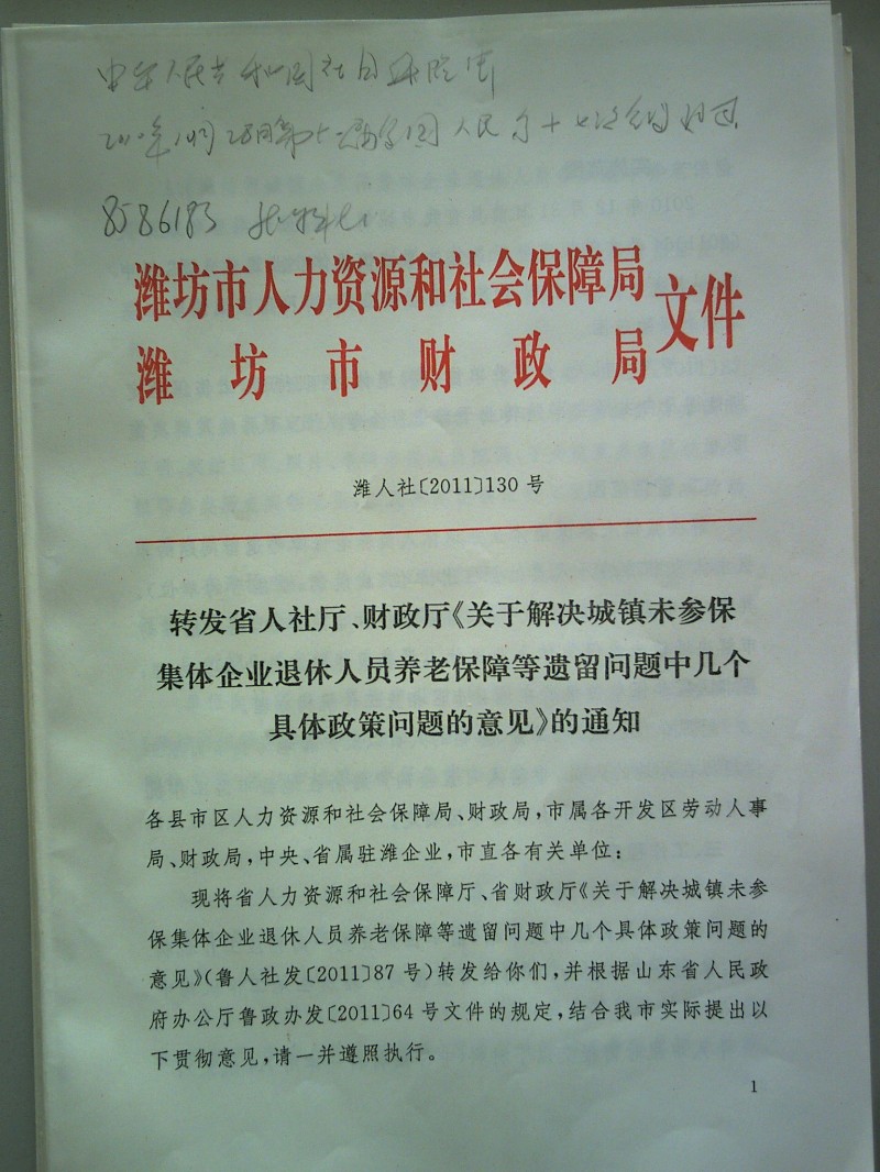 转发省人社厅、财政厅《关于解决城镇未参保集体企业退休人员养老保障等遗留问题中几个具体政策问题的意见》的通知