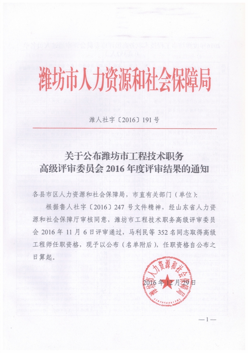 关于公布潍坊市工程技术职务高级评审委员会2016年度评审结果的通知.pdf